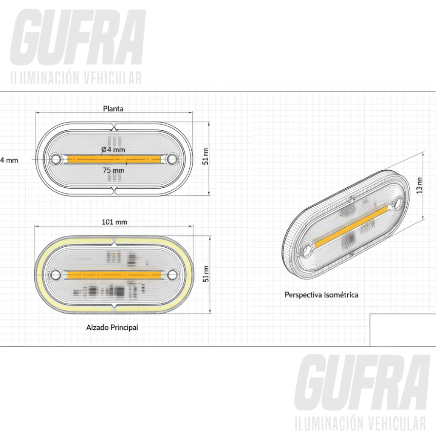 FARO ACRILICO OVALADO LED BLANCO Y AMBAR 12-24V