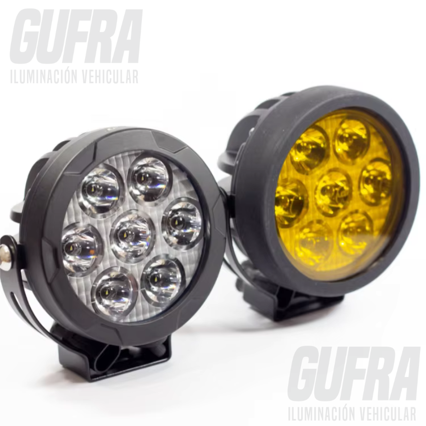 JUEGO FAROS LED REDONDO 12 Y 24V 100 WATTS BLANCO Y AMARILLO
